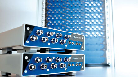 m+p VibControl software integrates with our measurement hardware made in Germany. These modular DAQ systems can be scaled for any needs – from compact 4-channel front-ends to rack-mounted systems with hundreds of input channels.