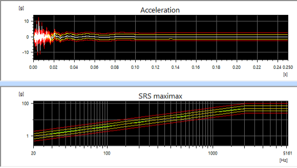SRS parameters can be integrated directly into the classical shock test - this allows you to check during execution whether the signal meets the desired SRS curve. This saves time and often also a separate SRS test.